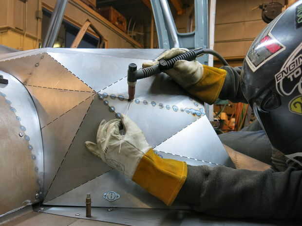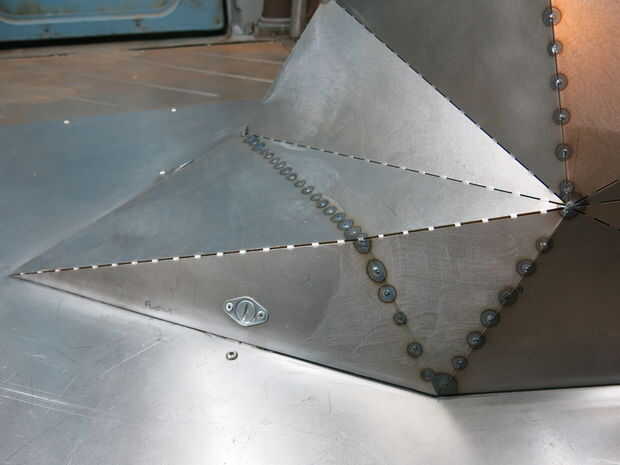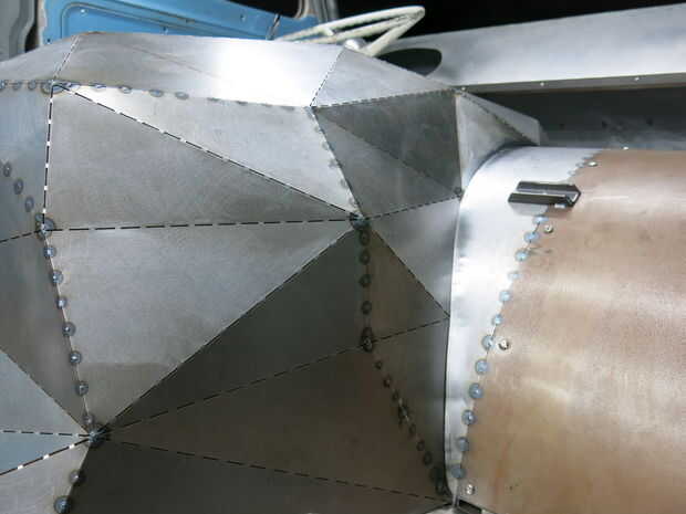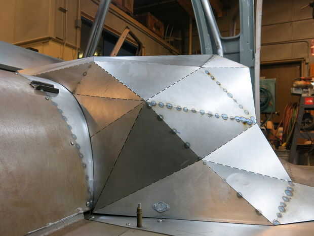 El recinto del motor entonces se describen cuidadosamente alrededor de los arcos de rueda. Lentamente pero seguramente fue mejor y mejor. Una vez satisfecho con el ajuste montara el recinto con los sujetadores de lanzamiento rápido llamados Dzus guarniciones.