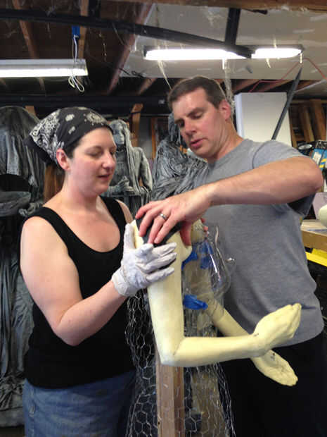 Con la altura de la cabeza de peluca medimos y cortar las piezas del marco de madera para crear proporciones corporales precisos. (Medición exacta proporciones humanas es algo que comenzó hace varios años atrás y hace una gran diferencia en el acabado prop.)