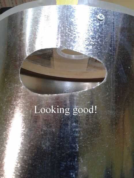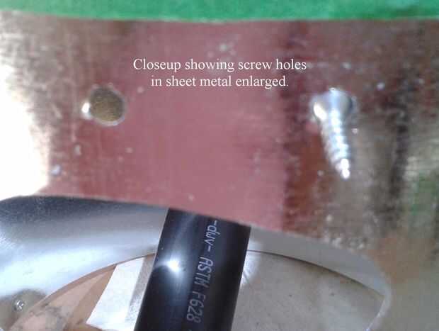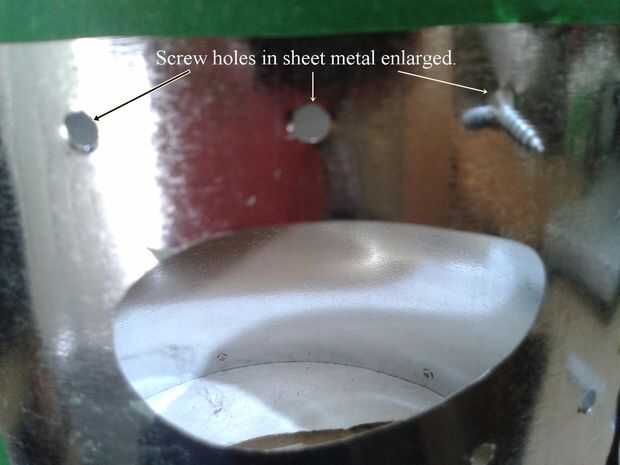 Ahora agrandar los agujeros en el cilindro de metal al tamaño (por chapa avellanado), mencionado antes y como se muestra en uno o dos de las fotos.