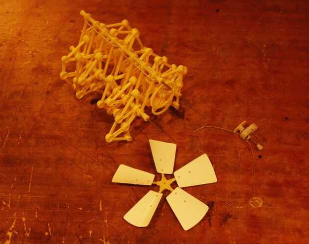 así que esto es un mecanismo Strandbeest, un mecanismo inventado por Theo Jansen, un artista holandés. Esta escultura cinética cuando mueve en una pendiente, o como en las creaciones de Theo Jansen, aprovechamiento de la energía del viento. Diseñé es