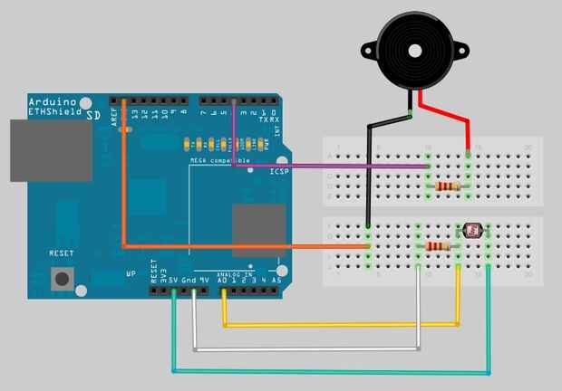 Un theremin es un aparato de música electrónica que puede detectar la posición de una manos de artistas y crear sonidos musicales sin el ejecutante tocar el dispositivo. Para nuestra luz theremin vamos a adaptar este concepto y crear un theremin que