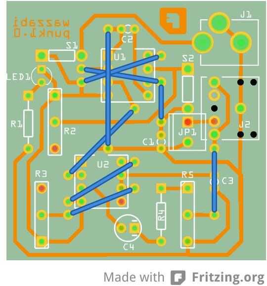 Los cables cruzados pueden ser un poco confuso pero miren la imagen de PCB que tomamos de Fritzing para averiguar dónde va cada cable.