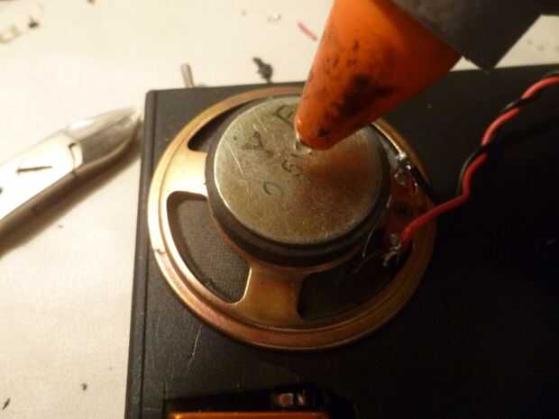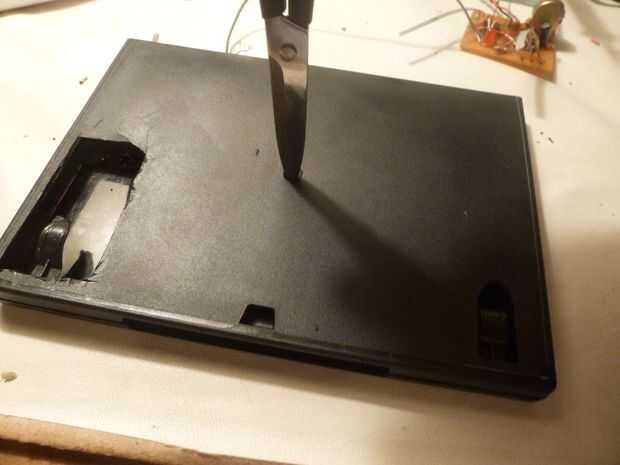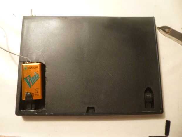 Primero cortamos un lugar rectangular para que ajuste la batería. Luego pegan los imanes en la parte inferior de la caja. También hicimos un pequeño corte en el centro de la caja de los cables salir.