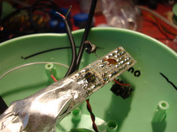 cuando primero tomé conciencia del Arduino, un theremin parecía un proyecto natural: sensor + actuador.  Resultó para ser muy accesible y divertido para hacer.  Es un diseño de ingenuo, usando una fotocélula y unos auriculares hackeados.  Después de