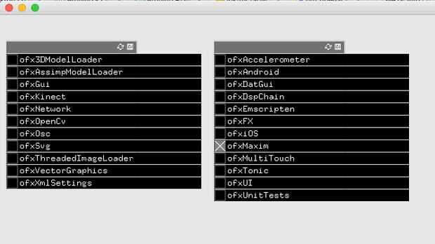 El siguiente paso es crear un nuevo proyecto de openFrameworks utilizando el generador del proyecto y antes de crear el proyecto hacer clic en el botón de complemento en la parte inferior y el interior que elijas tu nuevo ofxMaxim addon.