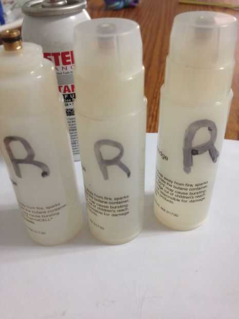 Última cosa, sostenga el cartucho vacío vertical y rellene con la bombona de butano. La cantidad de relleno a veces varían de 1/3 a casi completo. Ahora marque la punta de la bombona de butano por lo que puede reemplazarlo cuando tenga que comprar un repuesto nuevo, tendrás que cortar una punta nueva. También marca sus cartuchos thermacell "hackeado" para que sepas cuáles son recargables y que no