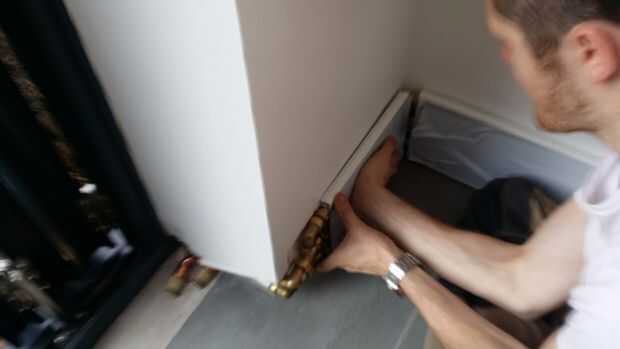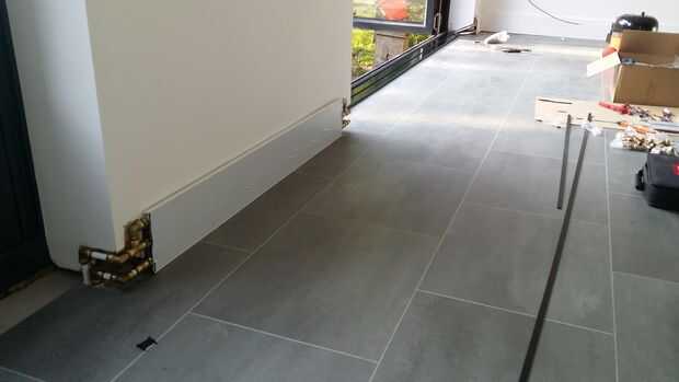 Una vez me alegra que todos los soportes en la pared, todas las varias conexiones de tubería están listos, y que la bordea es y rebabas; Me gusta el ajuste el ThermaSkirt a la vez.