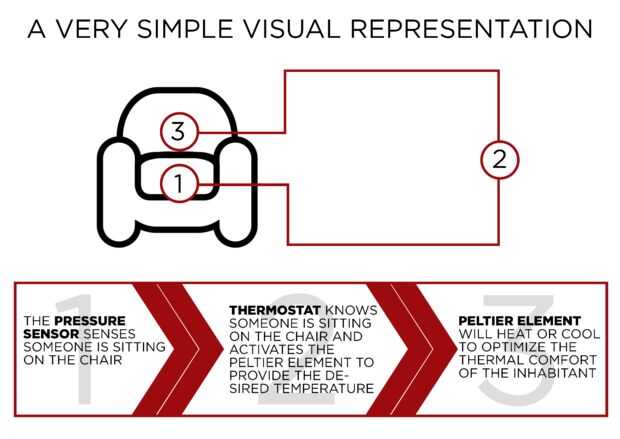 La tecnología emergente que se discute aquí, es la combinación de sensores de presión, calentadores, PTC, elementos Peltier y un termostato. Mediante la implementación del sensor de presión y elemento de Peltier en muebles de casa de un habitante, el termostato sabe cuando alguien está en el cuarto por un largo periodo de tiempo y puede activar el elemento Peltier para calentar o enfriar. Depende de la configuración que el habitante puede establecer para sí mismo.