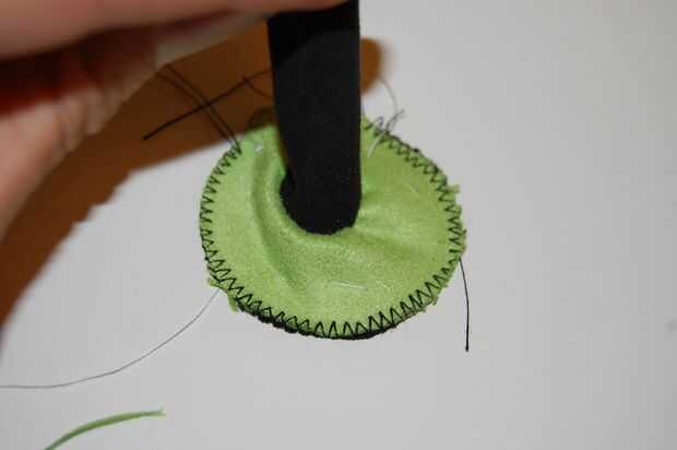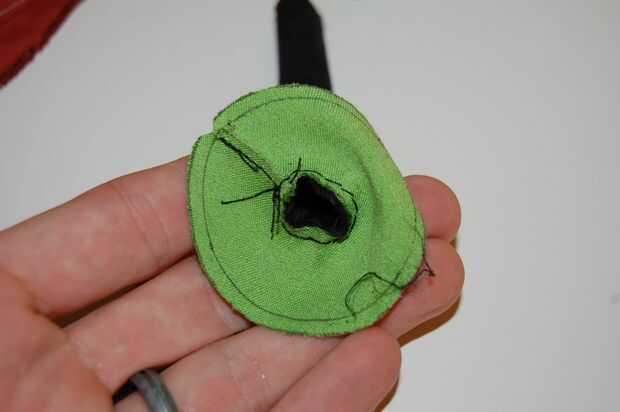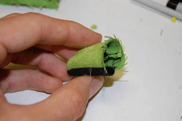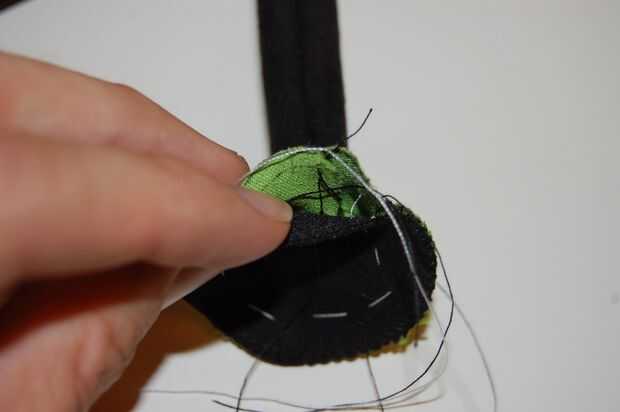 Hacer la mano sí mismo. Probablemente tendrás que hacerlo a mano así ya que es tan pequeño. Asegúrese de que seguir la curva. Usar puntadas apretadas por lo que sostiene unida a la mano.