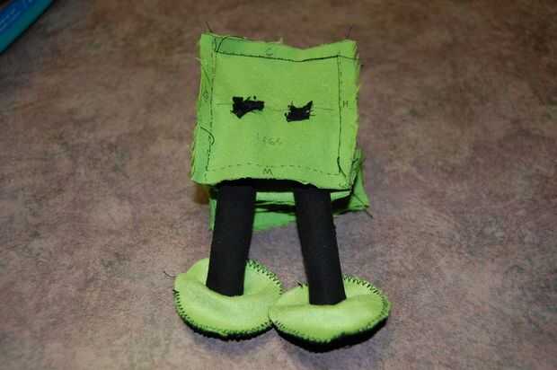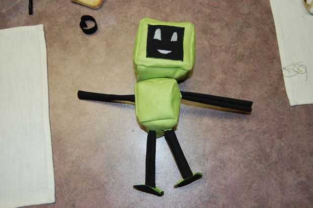 Con los brazos y las piernas adjuntadas, puede activar el lado derecho del cuerpo hacia fuera. Es usted si usted quiere dar el robot un cuello. Decidí que sería muy difícil de coser, pero le invitamos a probar. Simplemente cosí la cabeza directamente sobre el cuerpo, utilizando un Sobrecosa alrededor del agujero donde se unen el cuerpo y la cabeza. También puede usar una puntada normal, si puede maniobrar la aguja ahí.
