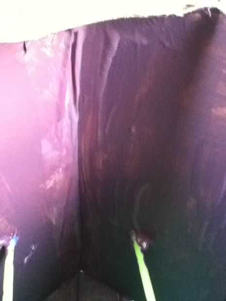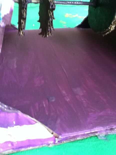 Tomamos púrpura oscuro pintar dentro. Pintamos tres o cuatro capa de pintura. Luego pintamos en la leva del mismo color.