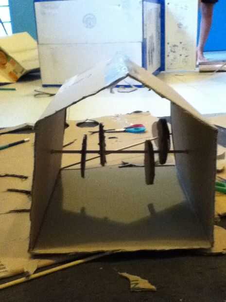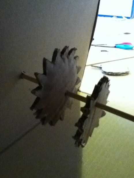 Hacemos los agujeros de las levas para poner el eje. A continuación ponemos las levas en el eje. Después de eso ponemos axel con levas en el cuadro. Entonces nos pegue cams con axel.