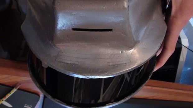 aplicar una capa uniforme del spray cromo plasticoat uniformemente cada 20 min hasta efecto deseado...Paso 1: con calce de metal corte mano placa formas y pegamento caliente en la posición...Paso 2:admirar el casco :)para una mirada más detallada en