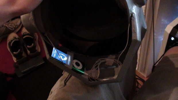 Nosotros también aseguró un iPod y un conjunto de auriculares allí así que podíamos escuchar a la música de Daft Punk mientras llevaba su casco. (última foto)
