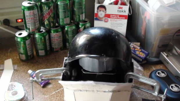 Bien, ahora su casco viene juntos! Puedes ver la forma de ella bastante bien, y se puede saber si hiciste algún error importante. El casco debería verse algo como la primera foto, que sin el traslapo y el exceso de pegamento. : P