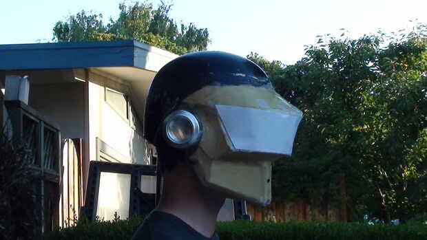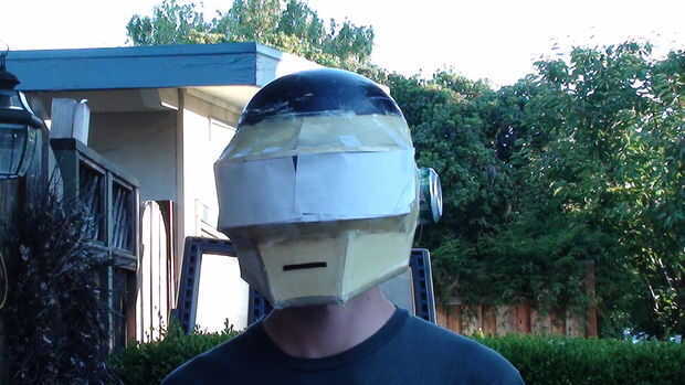 Después de la fibra de vidrio, pongo el papel sobre el área de los ojos para ver lo que el proyecto acabado generalmente se vería. (últimas tres fotos)