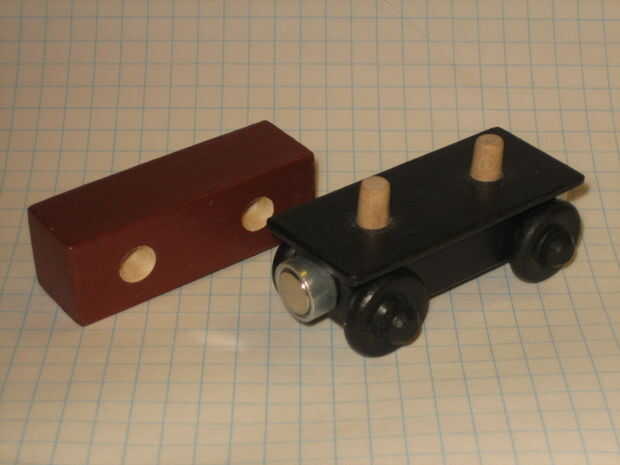 5.) si desea adjuntar permanentemente la carga en el chasis que se hace, pero si usted quiere tener una buena manera de hacer la carga intercambiables, dos 1/4" agujeros de 3/4" en ambos extremos, pero no recorrer todo el camino - sólo tienen que ser aproximadamente 1/4" a 3/8" profundidad. Dos 5/8" piezas de 1/4" espiga se pueden lijar suave y pegado en estos orificios para proveer pernos para el montaje de la carga. Dejar estos tacos sin barniz, pero arena tan suave como sea posible.