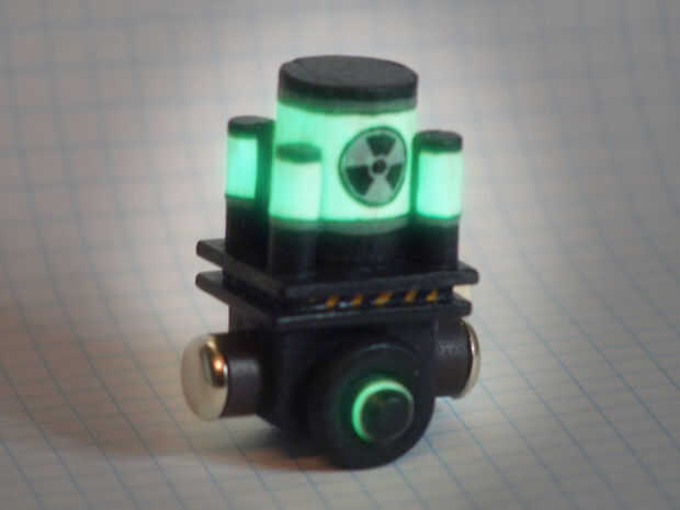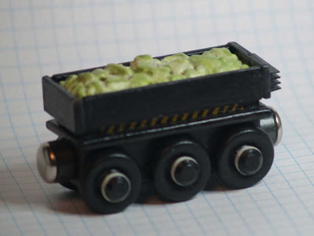 Este es mi favorito. Juegos de Thomas nunca vienen con villanos, así que decidí hacer un badguy potencia nuclear con un tierno lleno de residuos nucleares. Para los residuos que necesitaría algunos grava limpia, por lo que apenas entré en mi jardín, tiene una mano pequeña llena de pequeñas rocas y les dio un buen lavado y permite que se sequen.