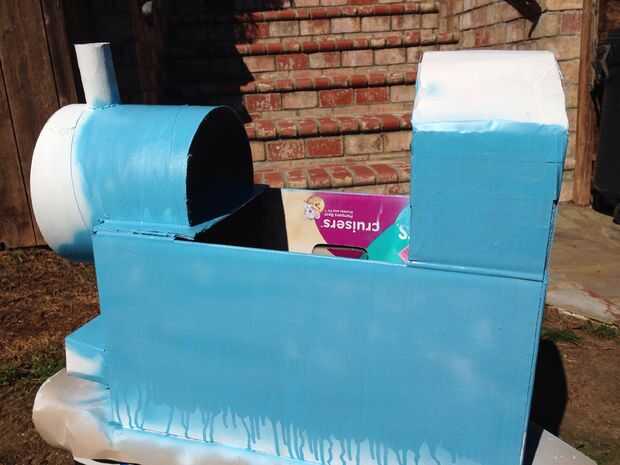 Luego pongo en varias capas de color azul con pintura en aerosol. No es una coincidencia exacta para Thomas pero bastante bueno después de agregar otros acentos.