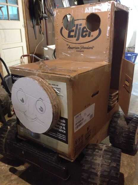 mi hijo le encanta Thomas y todos sus amigos de tren motor. Así para un desfile de disfraces en la escuela, me puse a hacerle un Thomas el traje del motor del tanque.Paso 1: Encontrar un cuerpo de tren empecé con una caja vacía de Pampers Cruisers ta