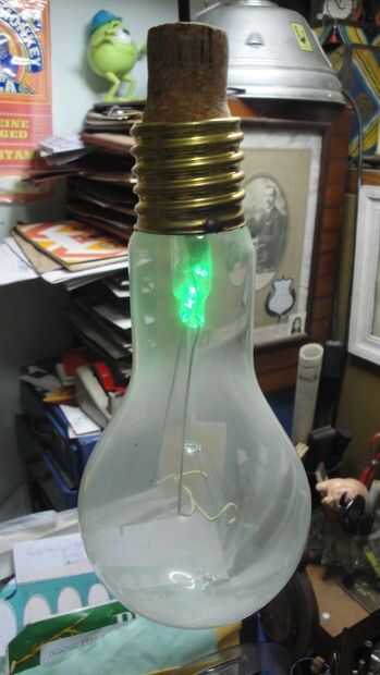 Se trata de un proyecto de Lucas Mafra. Un agradable y fácil de hacer lámpara decorativa. Una bombilla de E40 quemada, un pequeño circuito de LED que funciona en AC 110 ~ 220V, un corcho y algunos cables. It´s también barato y el LED durará por lo menos 100,000 horas. Un foco de luz normal tiene una duración de 1000 horas. Cuando este bulbo muere, probablemente habrá no más incandescentes en el mercado, si por lo tanto, serán vintage y mucho más costoso. =)