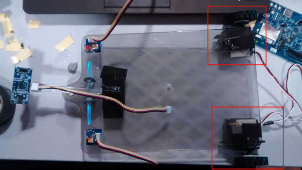 Fijar los motores en la parte posterior del portapapeles (el lado contrario a la rueda libre)