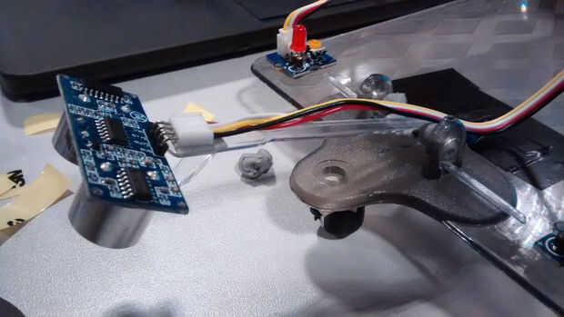 1. Fijar el sensor de ultrasonidos en la cuchara de plástico