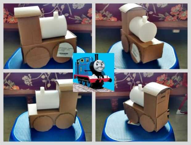 Hecha a Thomas el motor amistoso de algunas cajas de cartón. El cartón es doble para que mi hijo de 3 años puede no machacar mi creación fácilmente en capas. La caldera está hecha de un soporte papel que hice un tiempo de capas dobles de la tarjeta. Se hace la chimenea de la tapa de un tubo de pasta de dientes. No podría tomar la oportunidad de hacer con el papel (muy frágil).