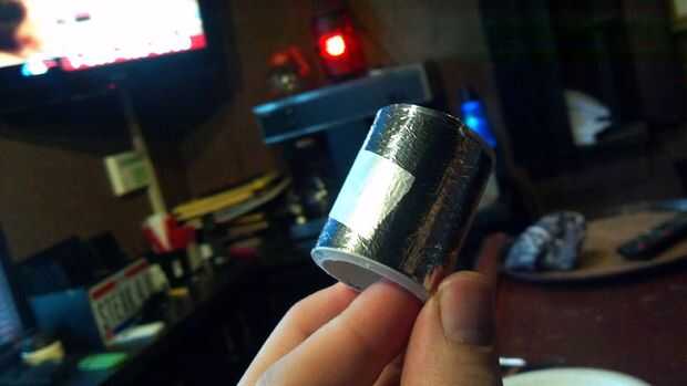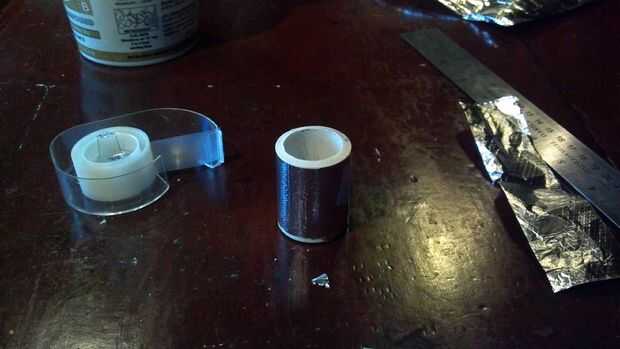 En primer lugar, una capa de papel de aluminio para el tubo con cinta. No superponerse demasiado.
