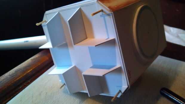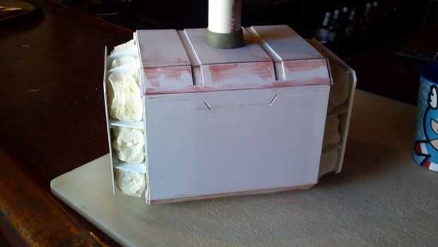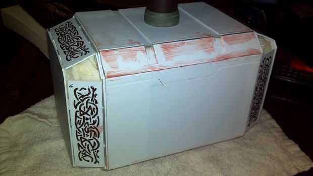 Luego, con algunos pinchos de madera, había forrado hasta los extremos del martillo, había pegado abajo y había clavado en el lugar. La cola le da un buen agarre, pero los remaches Asegúrese de que no vendrá aparte otra vez. Después de eso, cortar dos piezas para cubrir nuestra estructura (las esquinas cortadas a 45) y pegar cuidadosamente en su lugar. Entonces es tiempo para rociar espuma otra vez. Asegúrese de no añadir demasiado. Una vez que comienza la configuración usted puede tallar lejos las piezas parcialmente curadas si parece que se encuentra en expansión donde no quiere que.