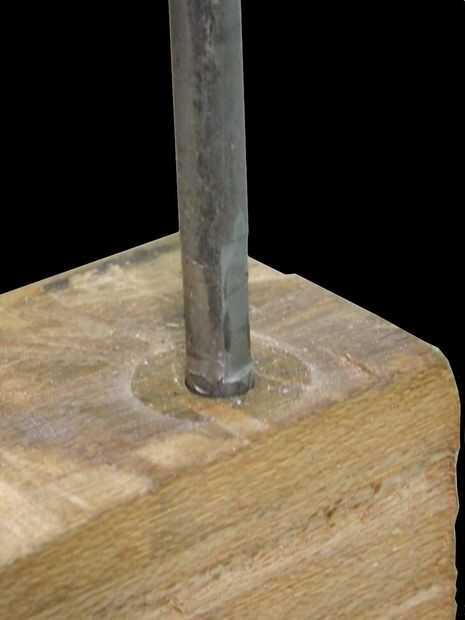 PRECAUCIÓN: Utilice gafas de seguridad cuando sosteniendo una barra metálica en posición vertical como se muestra en este paso. Es riesgoso mantener una barra de metal en una posición sin gafas como la varilla de metal puede causar lesiones a los ojos.