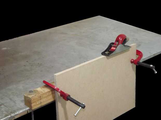 Varias hojas afianzado con abrazadera para cepillado en offset Arrangement. También puede sujetarse sola hoja de espesor variable.