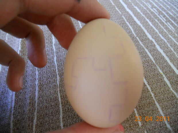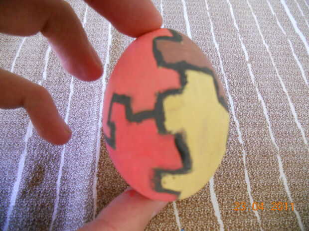 Ahora dibujar algunos diseños tontos en el huevo, o usted puede simplemente pintarlo al azar que está muy bien también... No hay necesidad de explicar este paso demasiado...