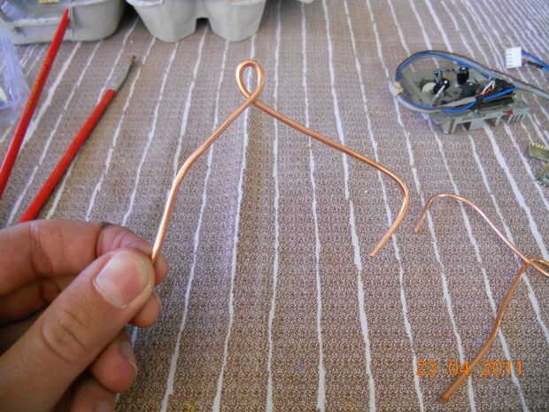 No mucho de un trabajo... sólo figura la forma cómo será este soporte lo. No es necesario que la forma como la mía. puede ser llena de bucles, o zigg-zaggy. De obtener un lápiz o algún tipo de barra/tubo/palillo y ponerlo en el cable donde desea que el cable que el bucle, ahora doblar el alambre alrededor del lápiz y ahí lo tienen.