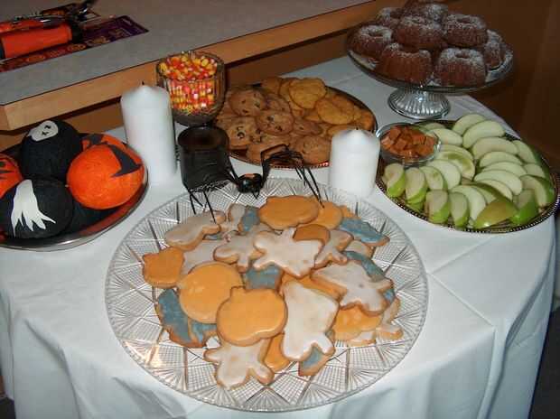 28. servilletas: agarrar algo Halloween con temas de tela en colores complementarios. Cortar en 12 o 18" cuadrados. Dobladillo o serge el rodillo los bordes.
