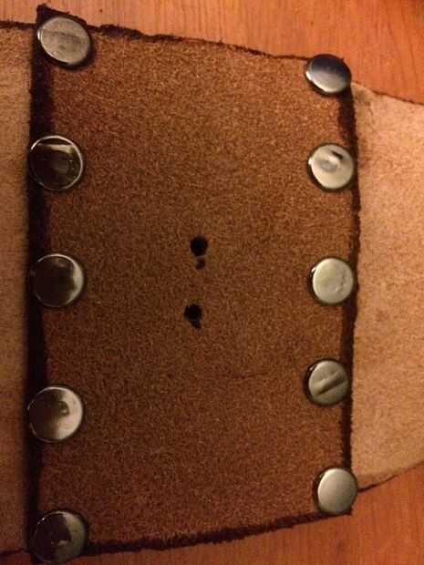 Perforar los agujeros con el punzón de cuero y el anillo a través del lazo