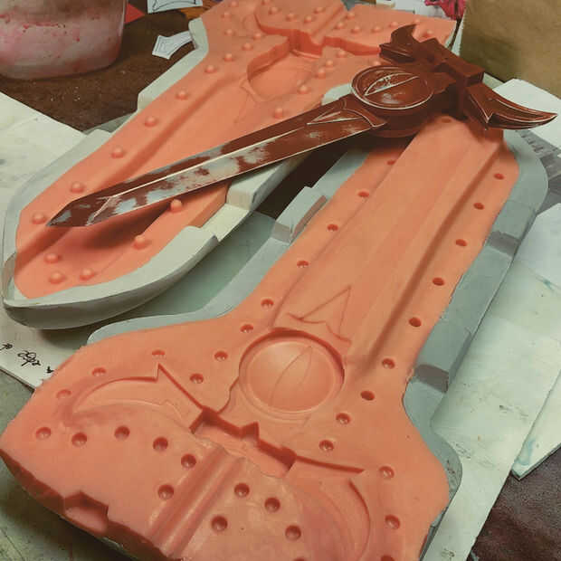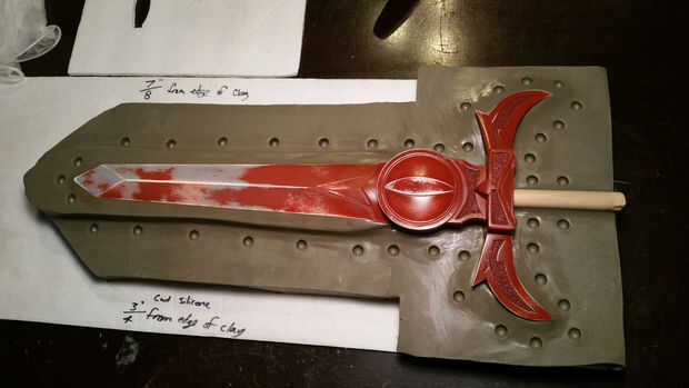 La última foto en este paso se muestra el primer casting de daga, usando una técnica de fundido frío, explicó en la sección de pintura.