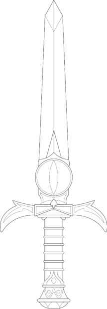 Realizó una búsqueda de imágenes de Google de la espada de presagios, en forma de daga y utilizado para hacer mi plantilla. Una plantilla de vector fue dibujada con Adobe Illustrator. El formato vectorial es escalable, por lo que la plantilla se puede cambiar a un tamaño diferente sin ser pixelada.