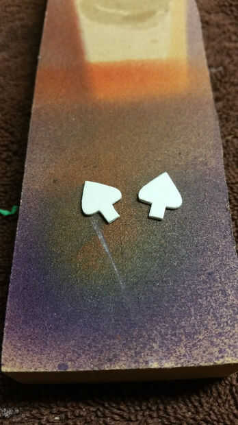 Las formas de la espada fueron cortadas de poliestireno. Luego cortar en el medio y adheridos a la base.