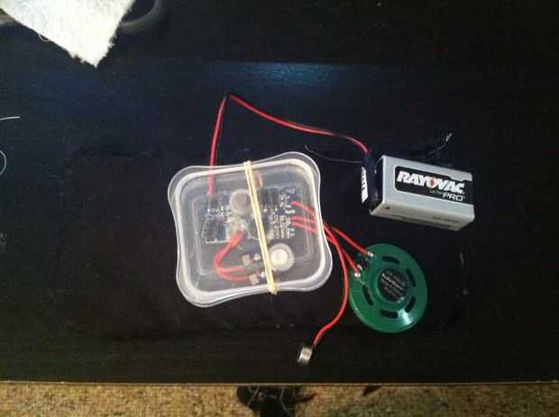 Utilice el dispositivo de grabación para grabar el sonido de thwomp. Puede encontrar este efecto de sonido en youtube o hacerlo usted mismo! Después de haber grabado el poco sonido que desea, usted puede cortar el botón micrófono y grabación para que accidentalmente no grabar un nuevo sonido después de que cose en la felpa.