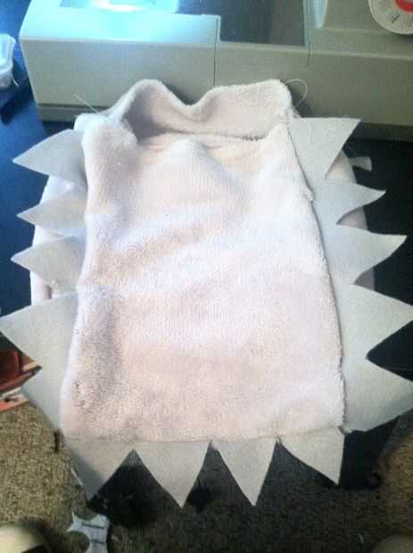 Coloque el segundo frontal 10 x 12 pieza de tela hacia arriba sobre la mesa. En uno de los lados que es 10 en largo, coloque el 8 en espigas de manera que el borde plano se alinee con el borde de la tela (Asegúrese de centrar!). Coloque el borde de la caja 10 x 6 hacia abajo sobre la parte superior de las púas, alineando los bordes de todas las tres piezas. Asegúrese de prender todo junto para que no se mueva al coser.
