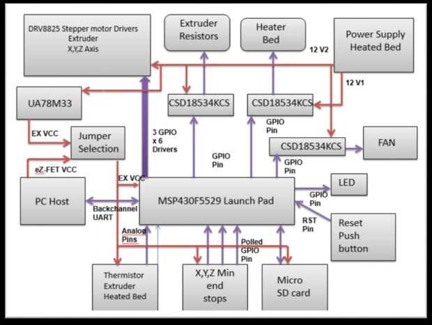 El diagrama de bloques anteriormente muestra cómo todas las cosas están conectadas en un nivel abstracto.