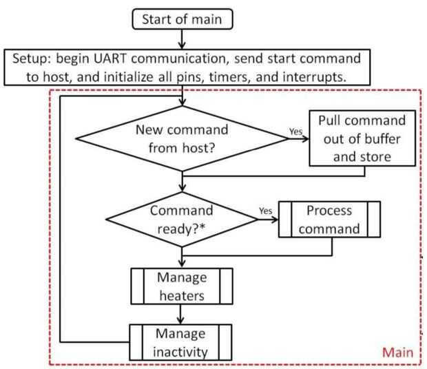 Energia, un IDE de código abierto que trae Arduino como la programación de launchpads de TI, se utiliza para compilar el programa (firmware) y cargar en el microcontrolador. El firmware encarga de toda la comunicación con un ordenador a través de UART e interpreta el código G.