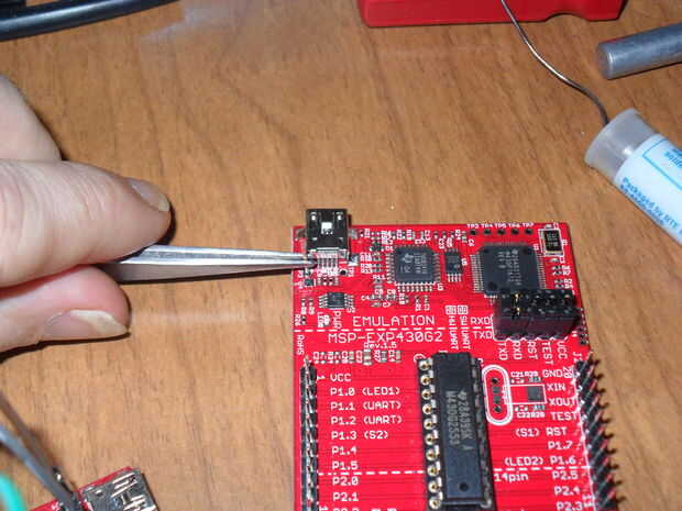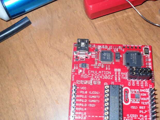 He añadido 2 pins cerca de la entrada, así que directamente puedo alimentar o tap 5.0v vía conexión externa USB. El LaunchPad no tienen pines en este lugar, tiene orificios que no estaban poblados. Fijo que.