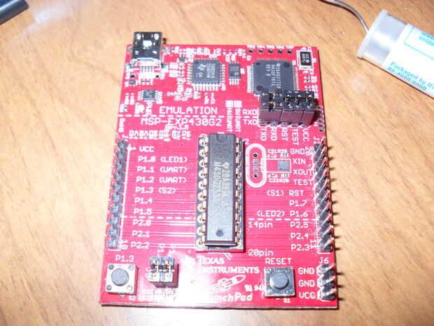 El MSP430 LaunchPad funciona a 3.3v (no 5.0v como Arduino) y puede ser suministrado vía USB 5.0v que pasa a través de un incorporado 3.3v regulador o con 3.3v directamente a los pines Vcc y GND de LauchPad en J6 o J4.