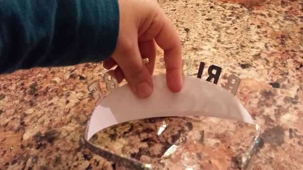 un) Coloque la plantilla lo mejor posible en el interior de la corona (figura 1). La línea trazada en el papel debe hacer frente hacia fuera, puesto que éste es cómo usted originalmente había trazado el contorno. En otras palabras, al mirar la tiara desde el exterior, debe poder ver la línea que trazó en el papel.