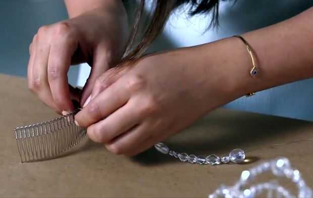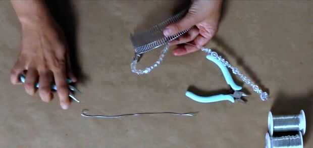 Ahora toma el peine 1 y flexible de alambre y envuelva el cable 1 en el centro del peine