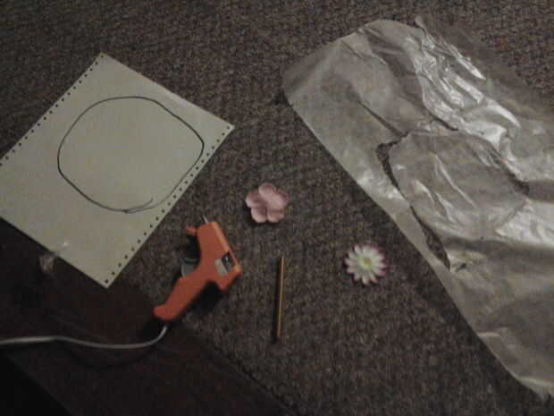 se necesita una pistola de pegamento caliente, un palillo del pegamento coloreado (se puede conseguir en la mayoría arte almacenar, una plantilla del tamaño de su cabeza, papel de cera, flores de tela (usted puede conseguirlos a más tiendas de artesanía)