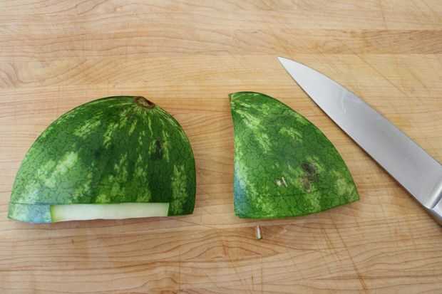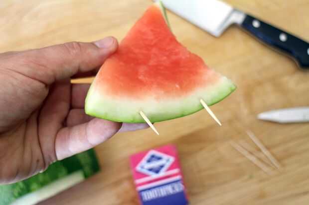 Una aleta de tiburón de la sandía puede ser hecha desde el corte de la boca, o desde el ángulo de la parte inferior.