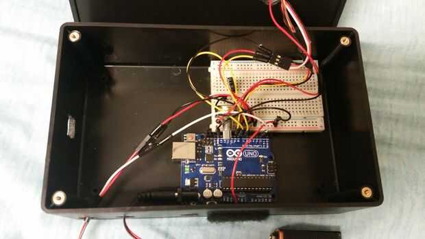 - Poner los componentes electrónicos terminados en el recinto y perfore orificios que son convenientes para acceder a los cables. Pase los cables por los agujeros para asegurar una apariencia limpia, con ningunos alambres perdidos inesperados empujando hacia fuera